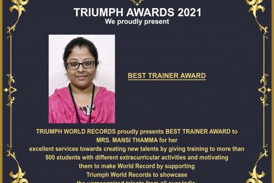TRIUMPH AWARDS 2021 Presents BEST TRAINER AWARD to MRS. MANSI THAMMA.