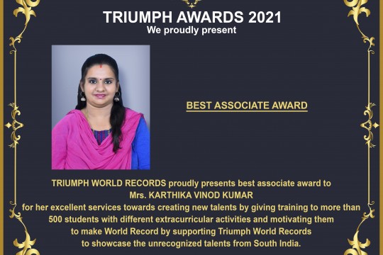 TRIUMPH AWARDS 2021 Presents BEST ASSOCIATE AWARD to KARTHIKA VINOTH KUMAR.