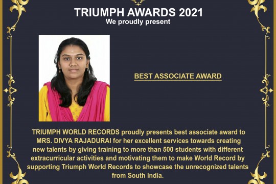 TRIUMPH AWARDS 2021 Presents BEST ASSOCIATE AWARD to DIVYA RAJADURAI